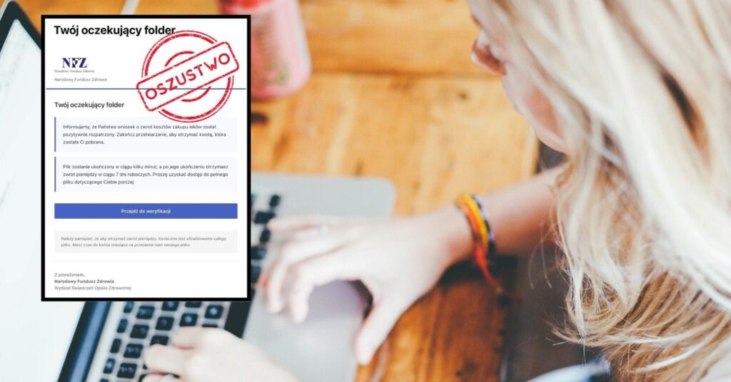 - W listopadzie 2025 roku pojawiła się nowa fala oszustw „na NFZ” dotycząca fałszywych e-maili o lekach refundowanych.